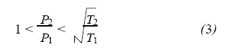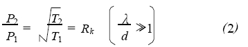 当压强适中时,系统内气体分子处于过渡流(克努曾流) 状态, 热流逸效应使得p2/p1介于1 和根号下T2/T1值之间,即