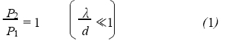 假定CDG连接在一个校准容器上,连接管道的直径为d 。当系统内的压强处于稳态时,CDG测量室内的气体压强为P1 ,温度为T1 ;校准室内的气体压强为P2 ,温度为T2 。当压强较高时,气体分子的平均自由程€λ远远小于d ,系统内气体分子处于粘滞流状态。当两室之间的气体压强处于平衡状态时,两室中虽然温度不同,但压强值相等,即