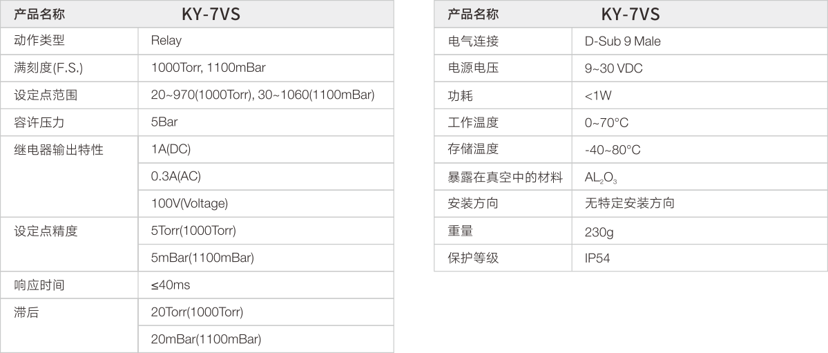 KY-7VS真空开关是一种利用电容式薄膜测量原理的真空电子传感器,可在规定的真空气体压力水平下提供电气开关触点功能。它在许多真空应用中用于压力控制和安全联锁功能。